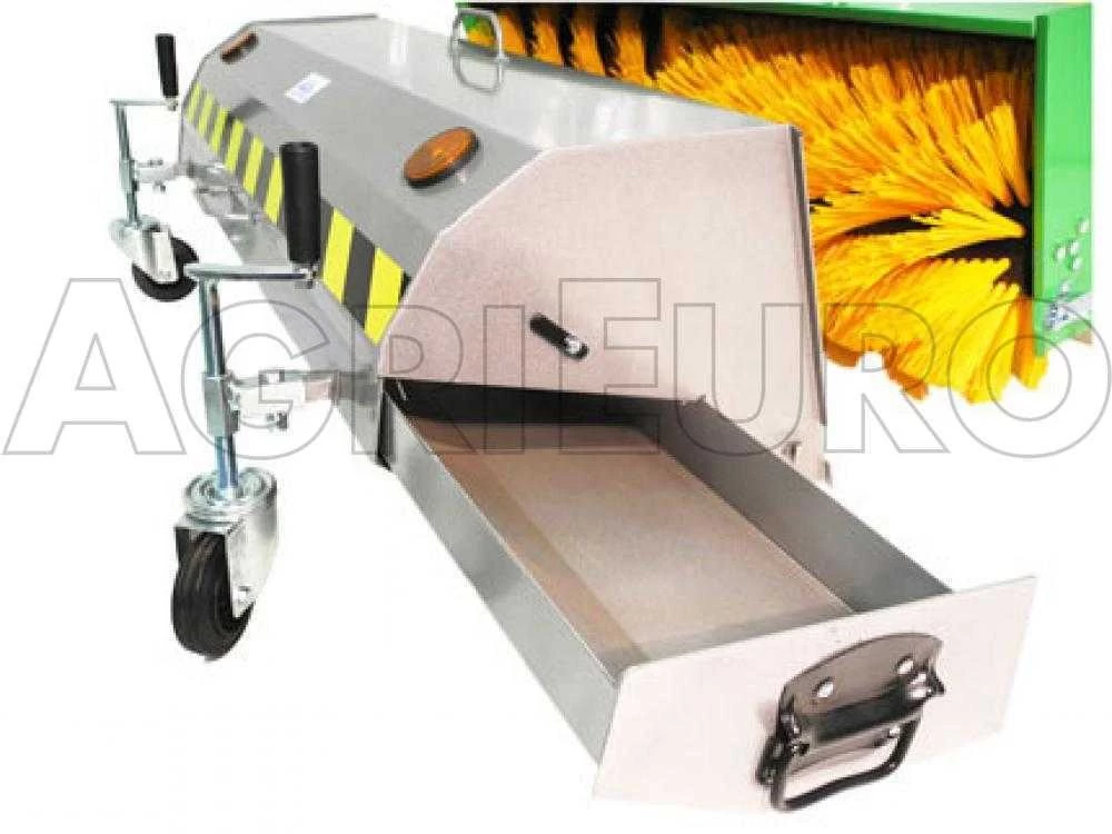 Il Raccoglitore è separabile dalla Spazzolatrice mediante l’apertura di due ganci. Il cassetto di raccolta si svuota estraendolo lateralmente con un maniglione.