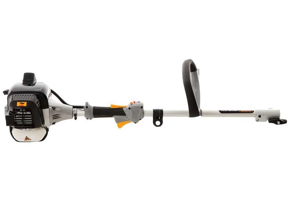 Dotato di impugnatura singola, asta di prolunga e tracolla imbottita.