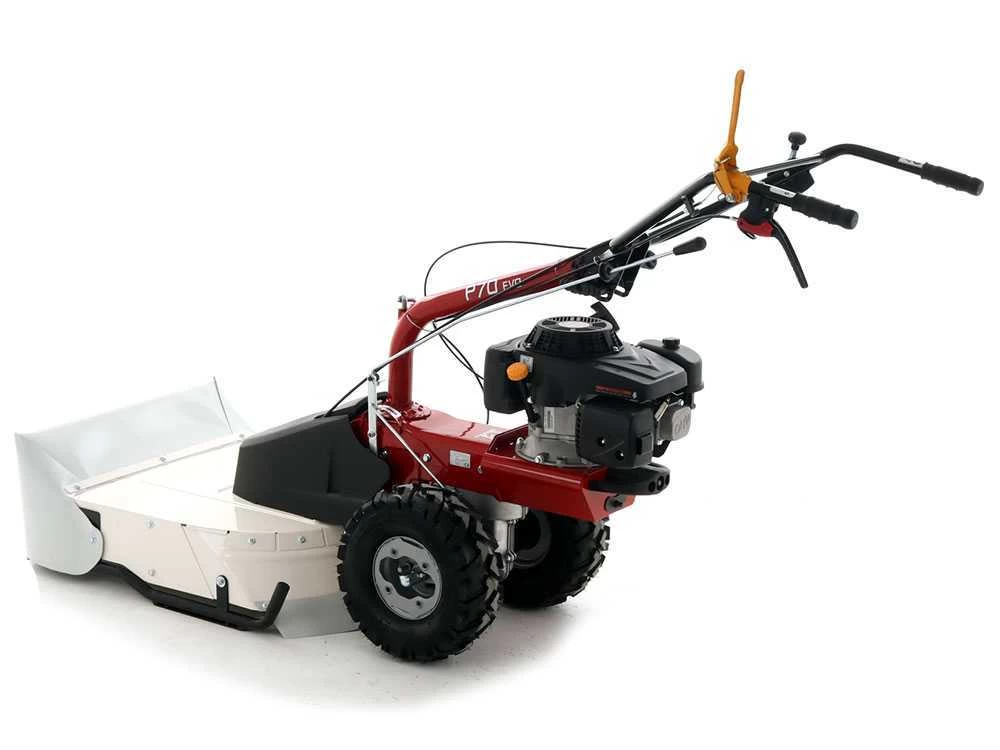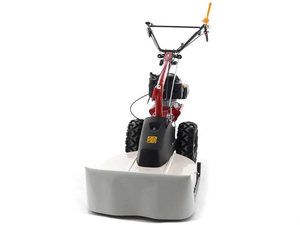Trattasi di un innovativo trinciaerba semovente, spinto dalle grandi ruote scolpite trazionate, collegate ad una trasmissione ad ingranaggi in bagno d’olio e spinte da un cambio a 5 marce (3 avanti + 2 indietro).