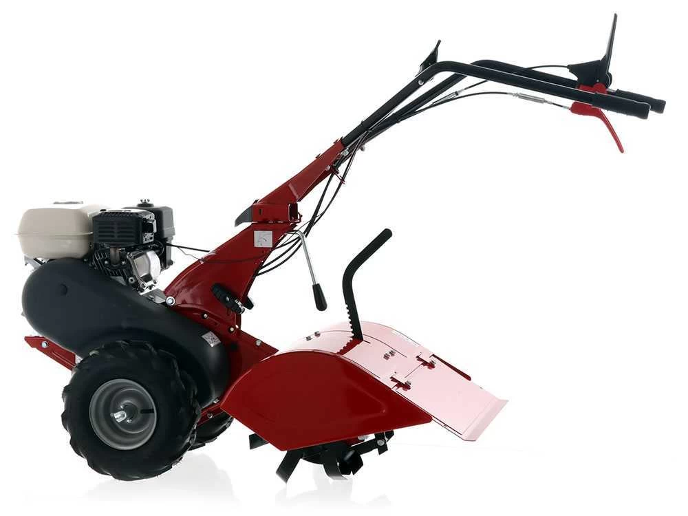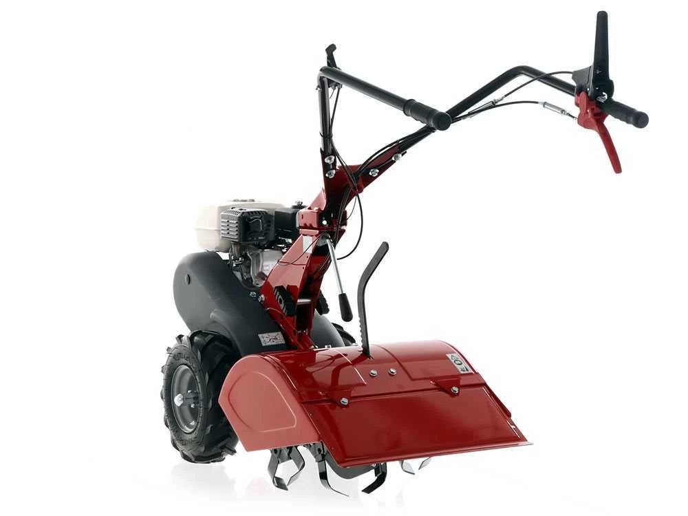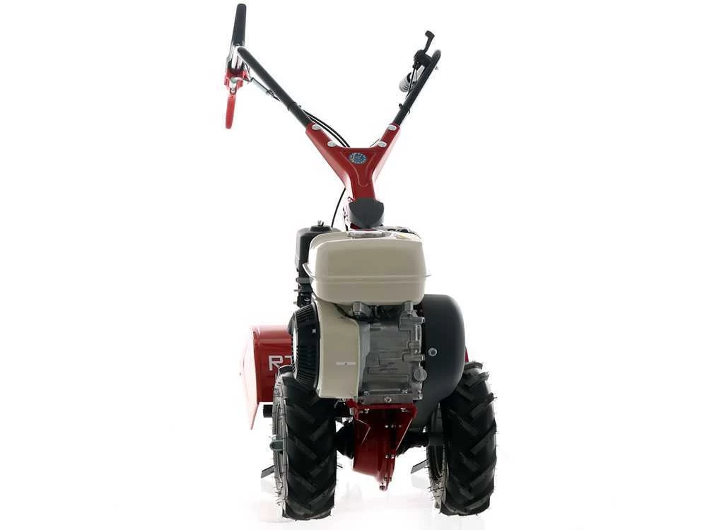 Dispone di trazione sulle ruote pneumatiche scolpite con profilo Tractor che garantiscono una motricità davvero buona, su terreni abbastanza livellati, non sassosi e soffici o già dissodati. La larghezza di ingombro limitata assicura una buona manovrabilita’ anche in spazi molto ristretti, mentre gli efficaci sistemi di antinfortunistica applicati al motocoltivatore ed il freno automatico di stazionamento garantiscono la massima sicurezza.